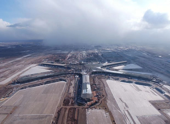 我司承建的青島新機場場道工程6標段于2015年12月14日中標,合同工期944日歷天,承擔的主要施工內容為標段劃分線內的土(石)方工程、地基處理工程、排水工程、3#調蓄水池、雨水泵站(含配電設備安裝)、基礎工程、混凝土道面工程及其他配套項目等工程內容。該項目于2016年3月15日正式開工,經過為期3年多的緊張施工,道面工程于2018年12月26日順利封倉,其他附屬工程基本全面完成,目前取得階段性成果。