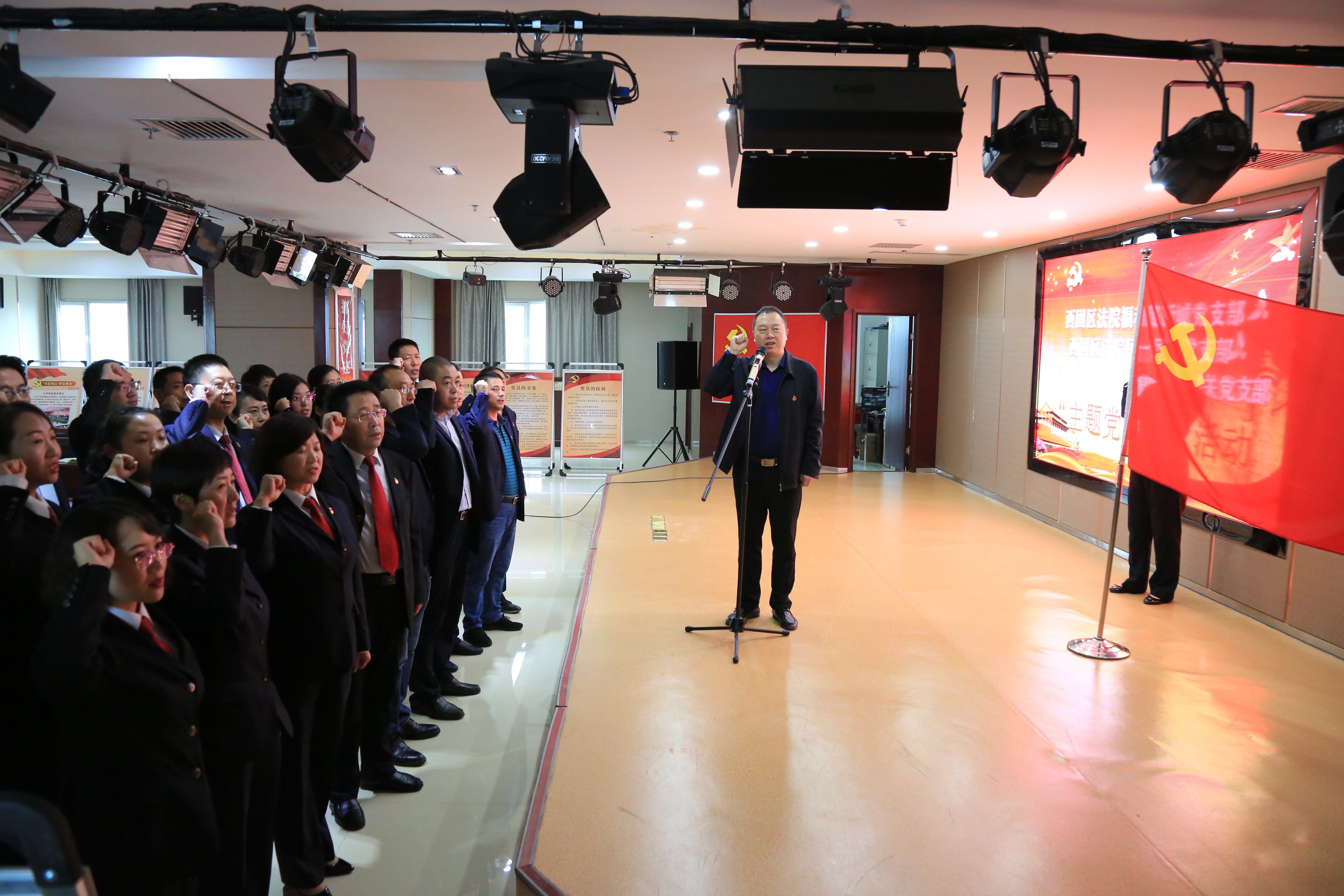 正值第二批“不忘初心、牢記使命”主題教育開展之際,又恰逢國慶假期第一周,舉國上下還沉浸在慶祝新中國成立70周年的喜悅氛圍中。10月9日,在西固法院分管院長帶領(lǐng)下,民一民二黨支部和福利路新城法庭黨支部深入我司開展“主題黨日+”和支部聯(lián)建活動。
