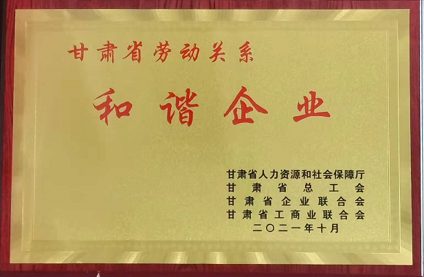 此次獲得“甘肅省勞動關系和諧企業”稱號,是對我司認真貫徹執行勞動保障法律政策、規范勞動用工管理工作成效的認可和肯定。我司將以“甘肅省勞動關系和諧企業”為新的起點,加強公司建設,進一步促進企業健康發展,為構建和諧社會作出更大貢獻。