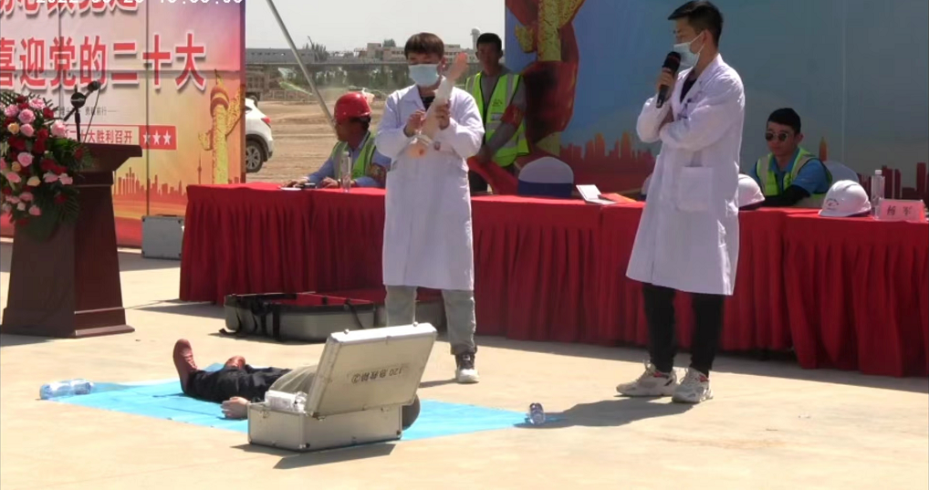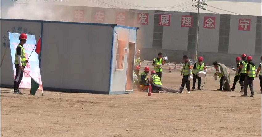 此次演練模擬項目現(xiàn)場駐地宿舍發(fā)生電器火災,項目部立即啟動應急預案,救援組第一時間撥打消防救援電話,組織人員有序撤離到安全區(qū)域。參演人員均嚴肅對待,過程規(guī)范迅速,演練活動順利完成。演練結(jié)束后,項目部組織開展了消防急救培訓,包含項目職工使用干粉滅火器進行滅火操作,對模擬假人進行心肺復蘇等。