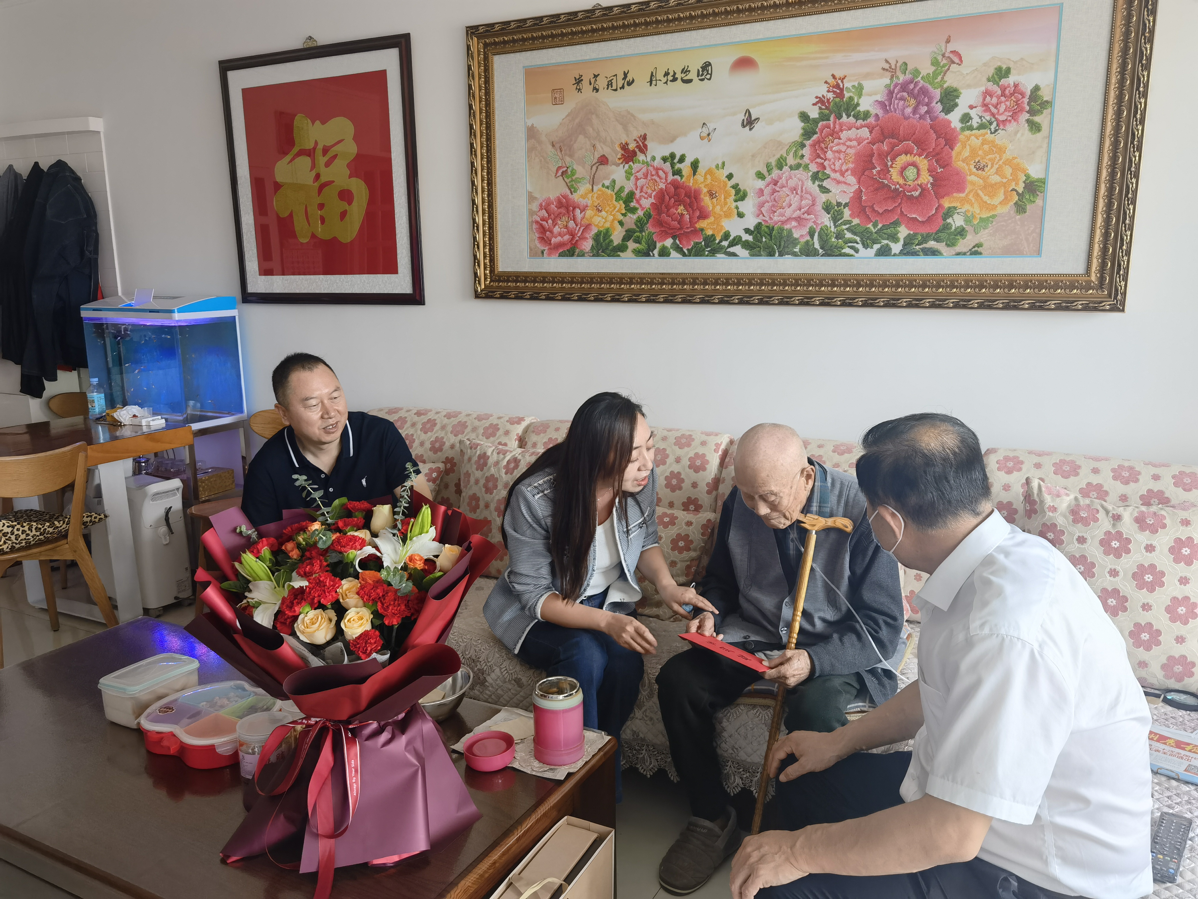 在楊寶藩老人家里,看到他在家人的照顧下,身體健康、精神狀態良好,大家十分高興。