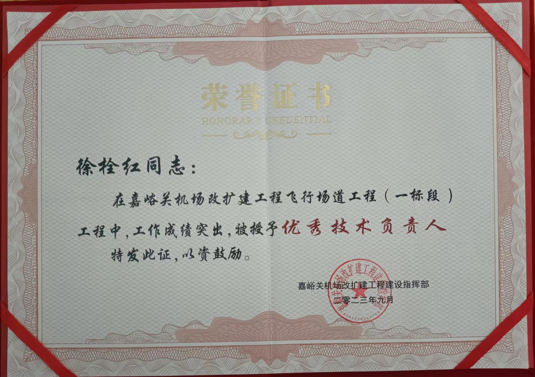 近日,嘉峪關機場改擴建工程建設指揮部對在嘉峪關酒泉機場改擴建工程中作出重要貢獻的參建單位給予通報表彰,公司榮獲“嘉峪關機場改擴建工程飛行場道工程 (一標段)優秀組織管理單位”稱號,徐栓紅同志被授予“優秀技術負責人榮譽稱號”。?