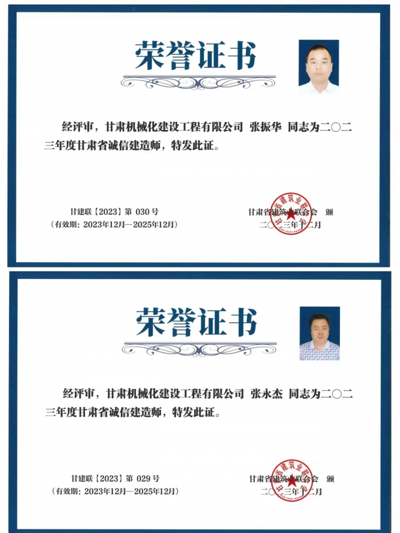 張永杰與張振華兩位同志獲得2023年度甘肅省誠信建造師榮譽(yù)稱號。